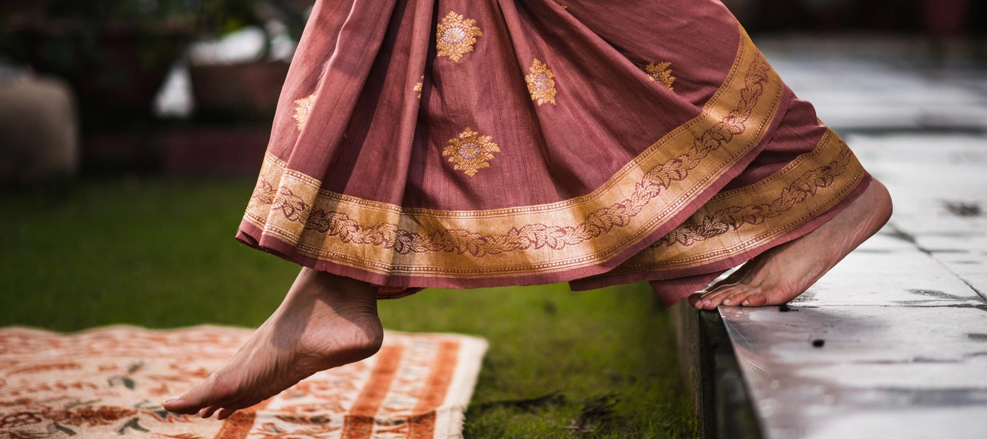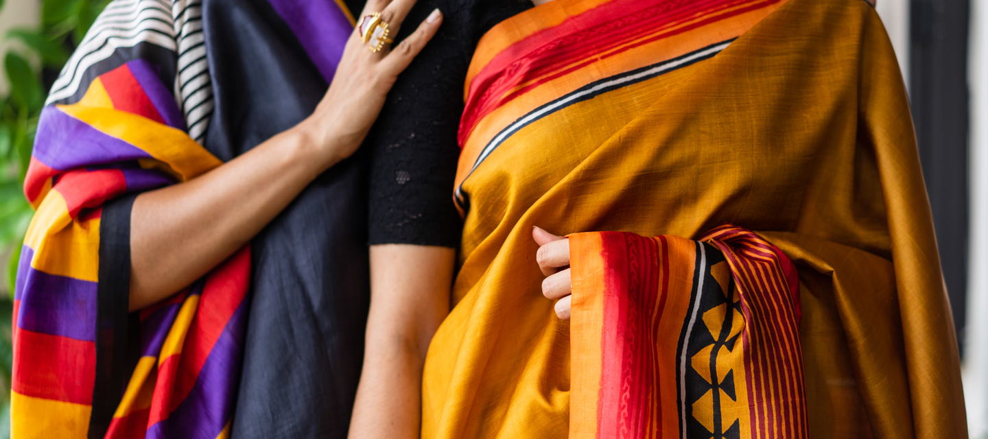 Step into effortless sophistication with our collection of Crepe Saris at Basho...