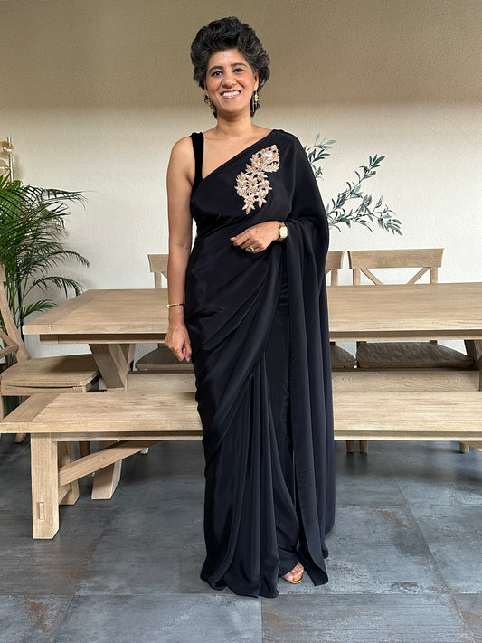 SRTIVE - BLACK BROOCH SARI