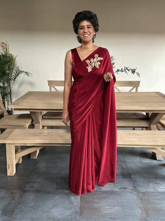 MAKE LIFE SIMPLE - MAROON BROOCH SARI