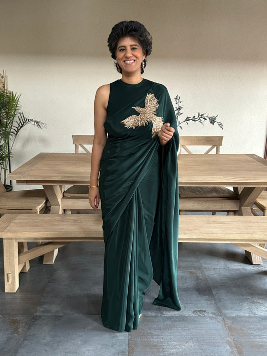 RIGHT REASON - BOTTLE GREEN BROOCH SARI