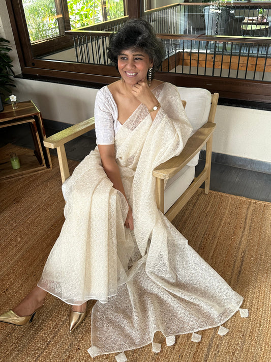 RITA RANI - CREAM SILK ORGANZA SAREE