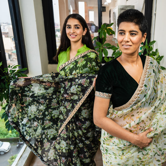 Step into sheer elegance with our exquisite collection of Organza Saris at Basho by Ila. Known for their lightweight, delicate fabric and luxurious feel, organza saris add a touch of sophistication to any occasion. Perfect for weddings, parties, or festive celebrations, our organza saris feature intricate embroidery and vibrant designs that exude elegance and charm. Visit our Paltan Bazaar store in Dehradun or shop online to experience the beauty of organza saris, with fast delivery across India.