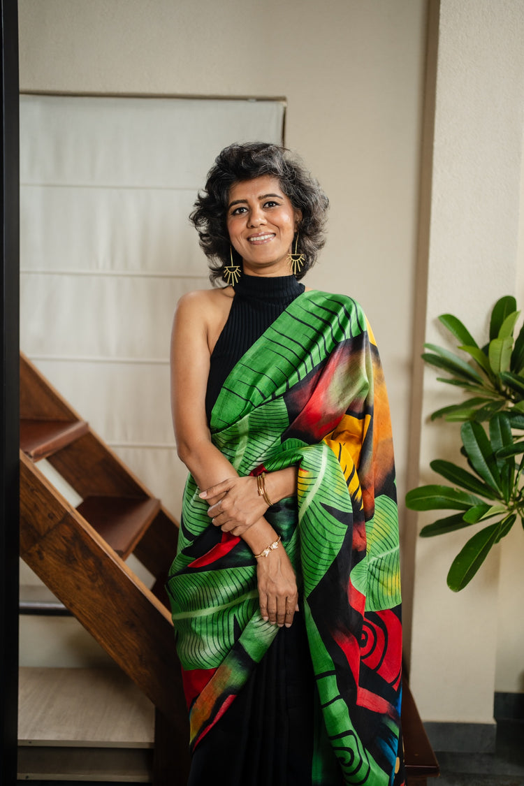 Indulge in the timeless elegance of the Tantra Silk Painted Sari, available exclusively at Basho by Ila. Each sari is a masterpiece, hand-painted with intricate designs on luxurious silk fabric, making it the perfect blend of art and tradition. Ideal for special occasions, these saris offer a unique, artistic touch that sets you apart. Visit our store in Paltan Bazaar, Dehradun, or shop online for this exclusive collection, with delivery available across India.