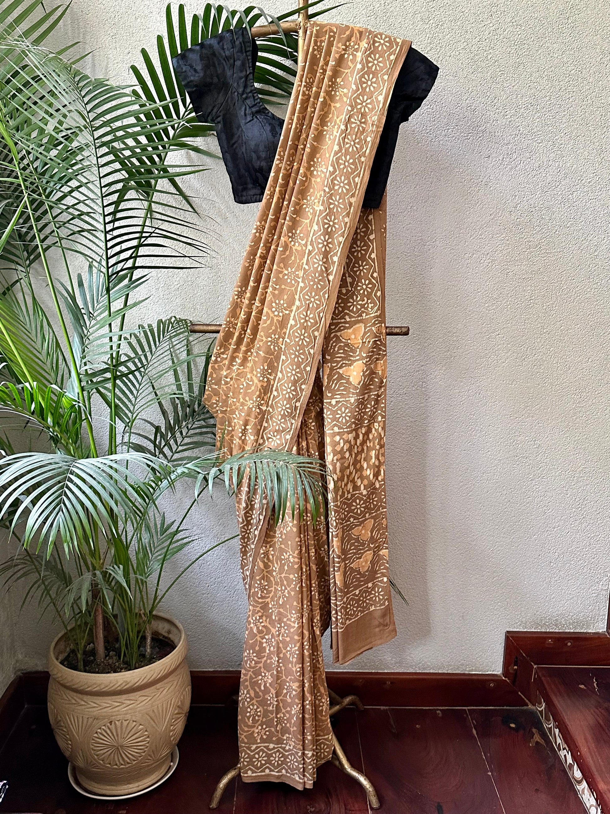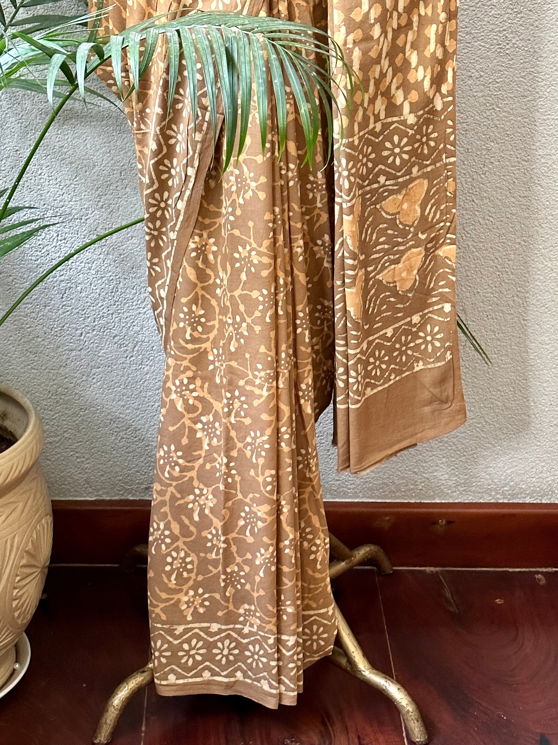 Hand block cotton sari .Extremely easy to wear and surely a head turner. The fabric is comfortable on your skin and suitable for summers.