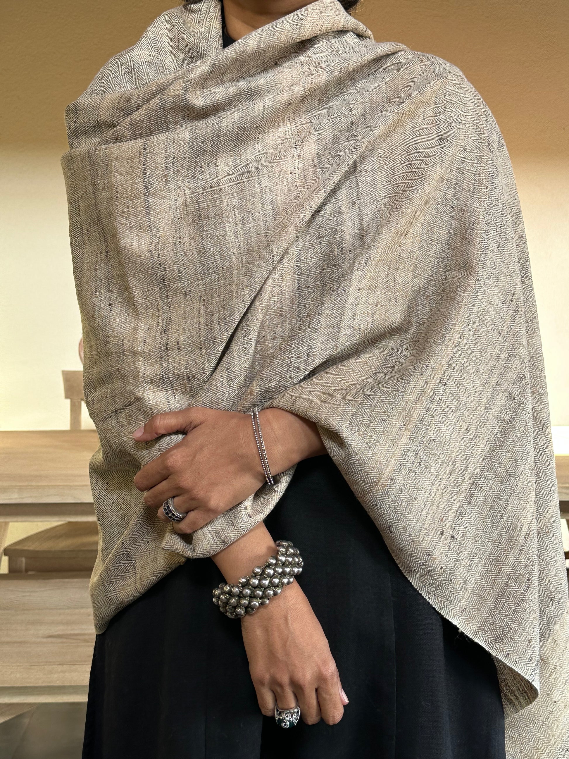 This wool Tassar shawl is soft, warm, and comfortable to wear. It has a rich texture and a graceful fall, making it suitable for daily wear, office use, or special occasions. Easy to style with both ethnic and western outfits or any winter outfit. it's stylish as well as provides excellent insulation against the cold."