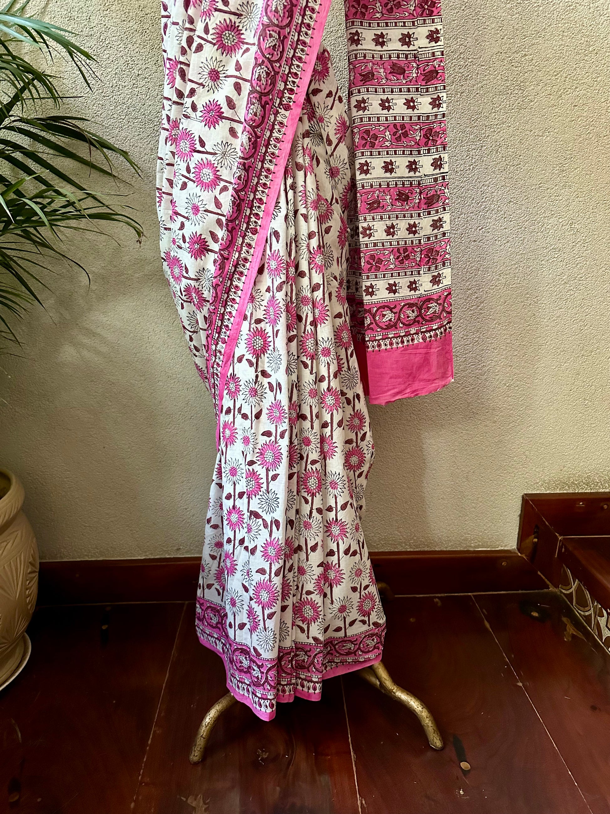 This pure Mul cotton saree is beautifully crafted with traditional Sanganeri cotton block prints. Made from soft, breathable, and lightweight fabric, it offers all-day comfort and an effortless drape, perfect for daily wear and casual outings.