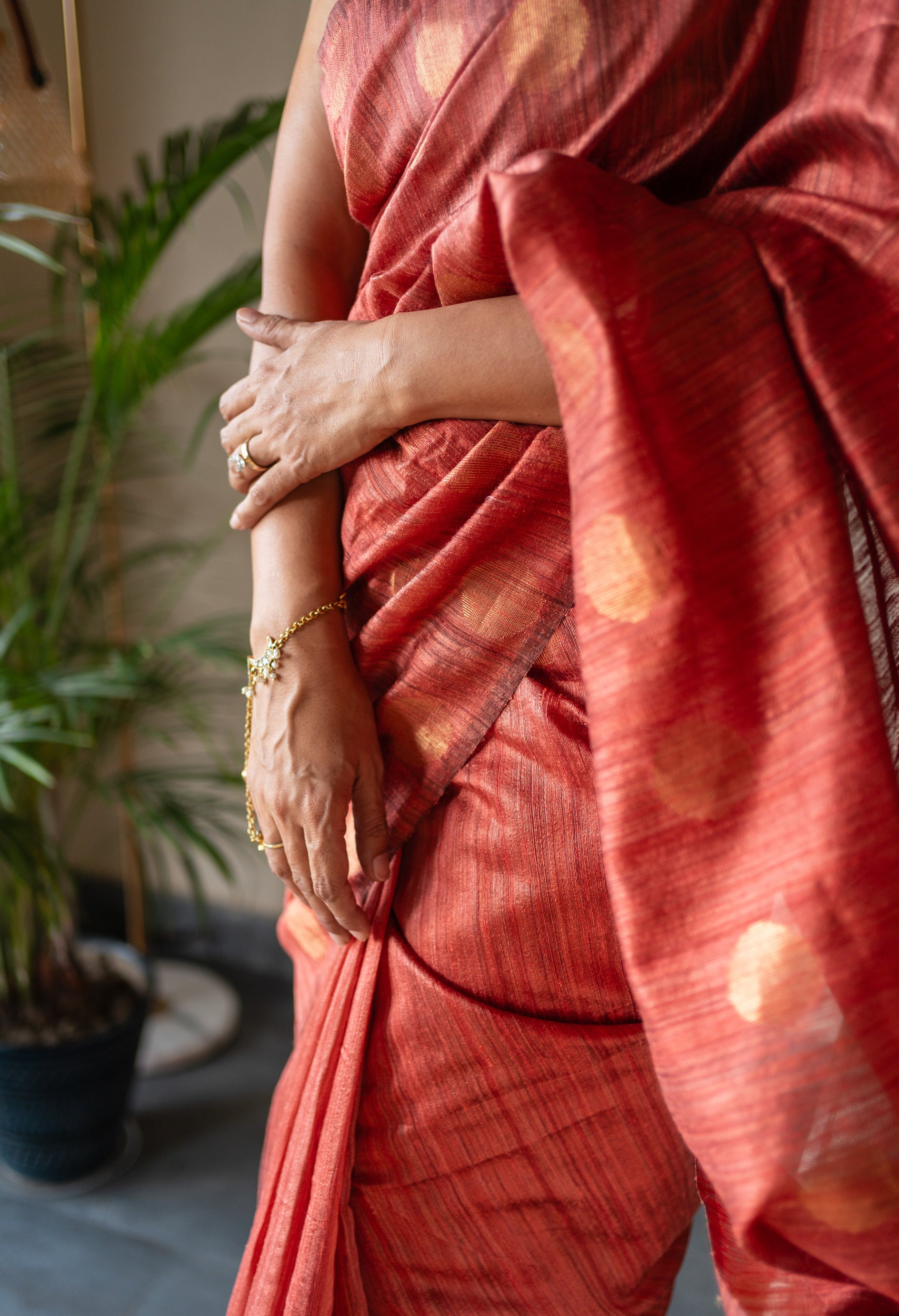 A stunning pure silk saree designed with exquisite hand woven patterns, blending tradition and elegance. Its rich texture and timeless artistry make it a statement drape.