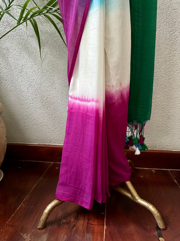 Garner the attention of many by wearing this modal sari from Basho by Ila. Extremely easy to wear surely a head turner. Stitched to perfection in our small workshop in Dehradun Uttarakhand. These are our own designs.