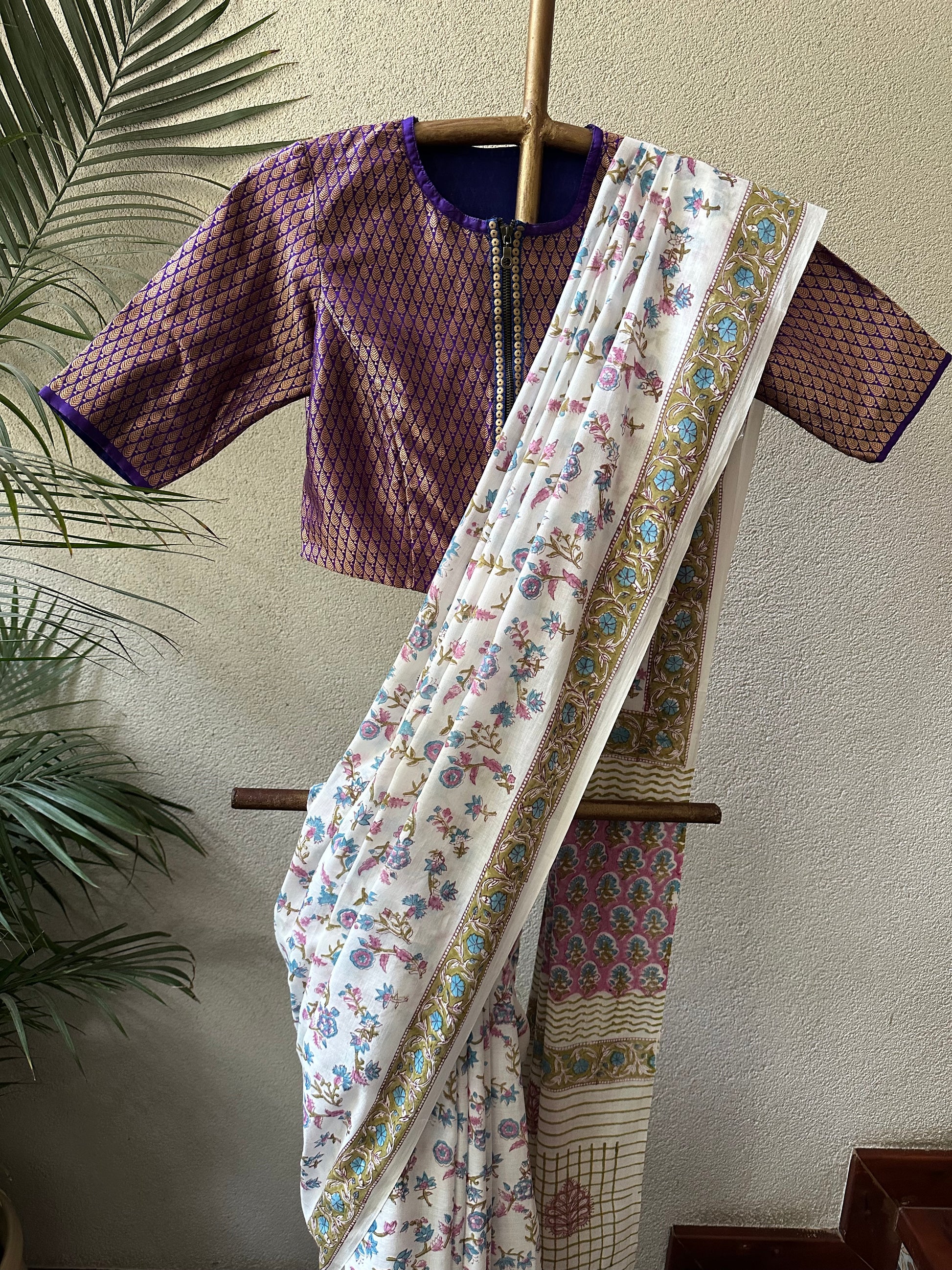 This pure Mul cotton saree is beautifully crafted with traditional Sanganeri cotton block prints. Made from soft, breathable, and lightweight fabric, it offers all-day comfort and an effortless drape, perfect for daily wear and casual outings.
